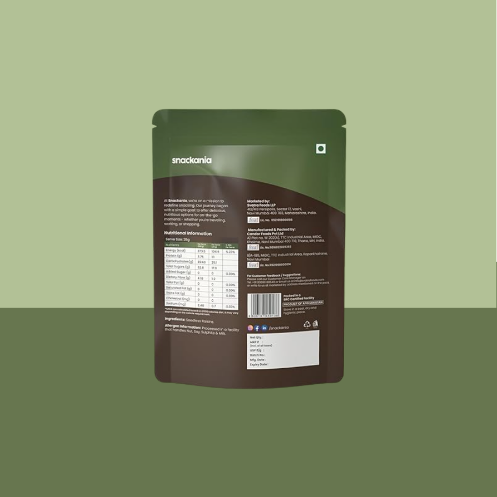 We source all the nuts & dry fruits directly from the farms which are hygienically packed in a BRC certified unit. Our raisins are 100% natural and handpicked for preimum experience. Raisins are rich in vitamin A, A-Carotenoid, and beta carotene which improves eyesight and they help regulate the blood pressure